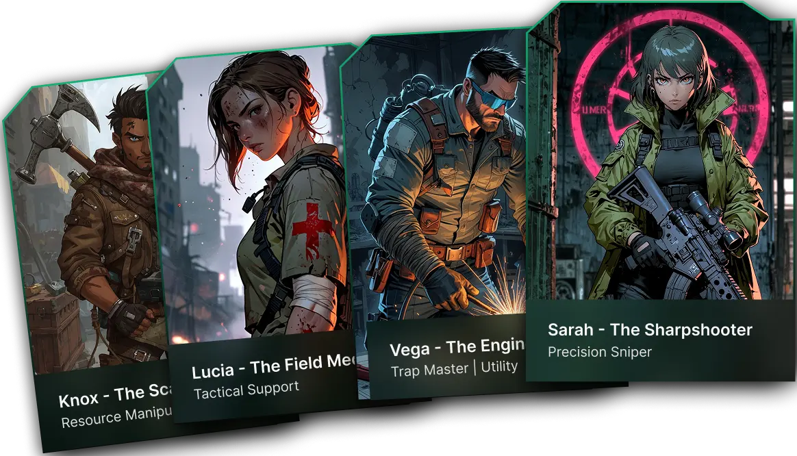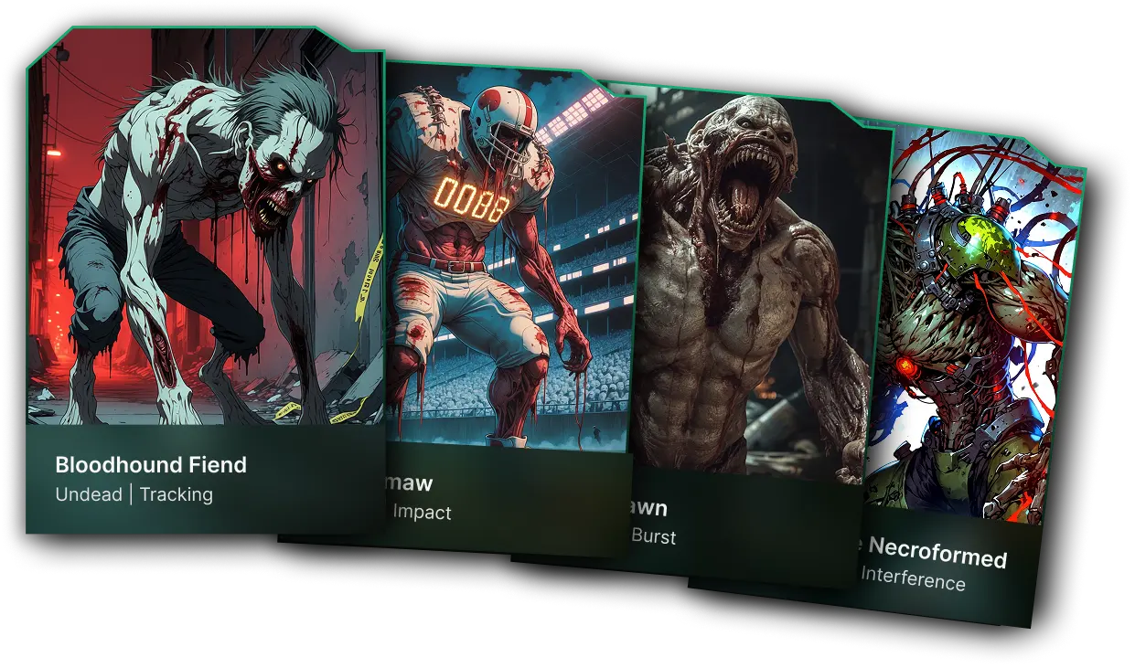 NecroGenesis is a post-apocalyptic tactical trading card game where players face off in an intense battle for survival. One player takes on the role of a Survivor, a resourceful human clinging to life in a world overrun by the infected. The other becomes the Zombie Horde, a terrifying force of evolving mutations, brutes, and boss monsters.